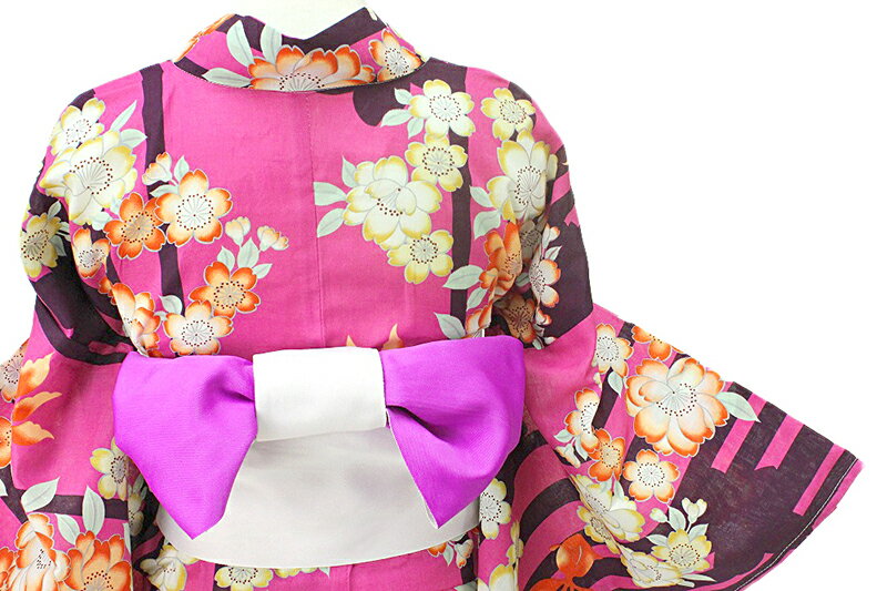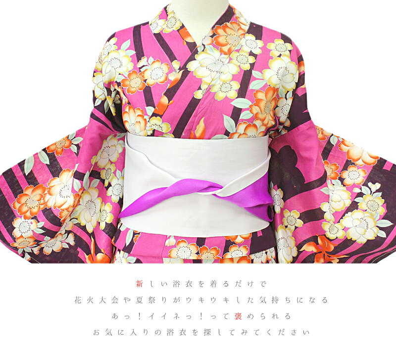 ※大きすぎる方は調整不可 身丈(肩から) 約163cm(4尺3寸1分) 裄 約68cm(1尺8寸) 袖丈 約49cm(1尺3寸) 商品詳細 ■カラー 鮮やかな濃いピンク色 ■素材 浴衣:綿100% リバーシブル半幅帯:ご注文時に選べる帯会場からご希望の帯を買い物カゴへ入れて下さい(商品画像:品番B 「紫×淡紫」) 下駄:高級焼き桐下駄(フリーサイズ、鼻緒の柄は浴衣に合う色柄をスタイリストが選ばせていただきます。