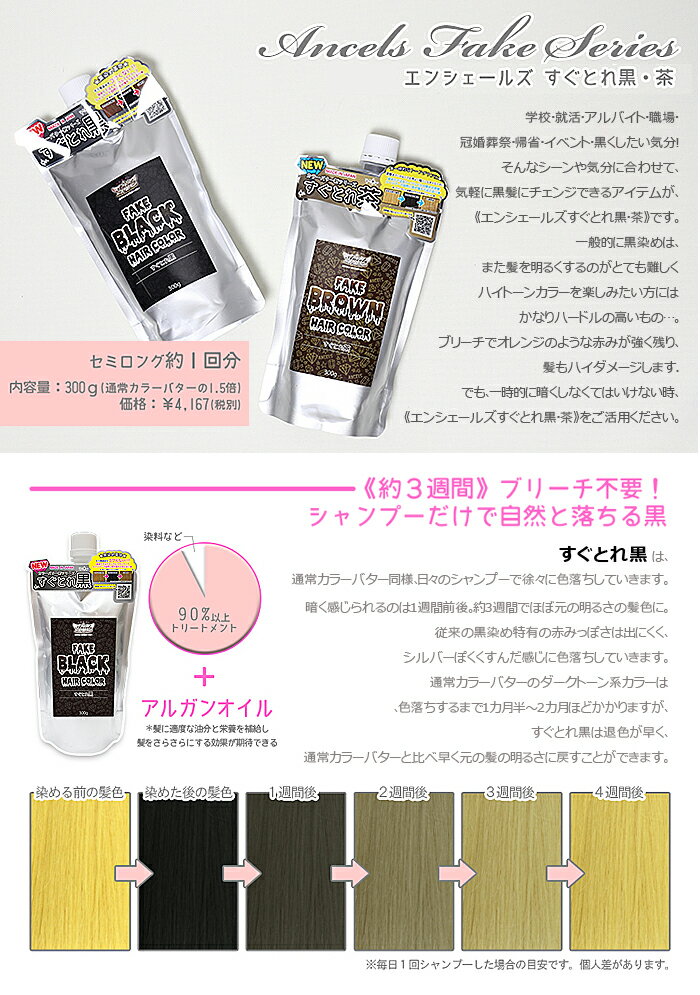 エンシェールズ ヘアカラートリートメント エンシェールズカラーバター すぐとれ 明るい髪色を一時的にトーンダウンするための、ヘアマニキュアタイプのカラートリートメント。
