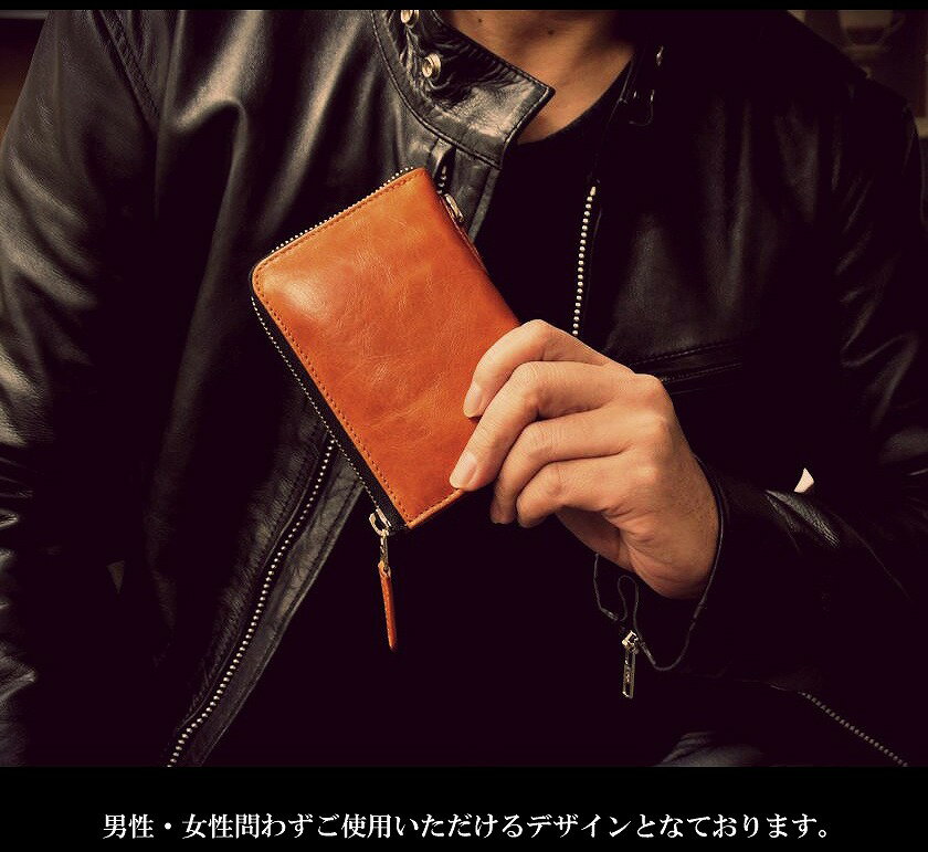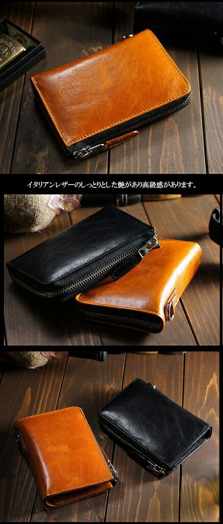 独特の艶と擦れ感が特徴のイタリアンレザーラウンドファスナーウォレット。