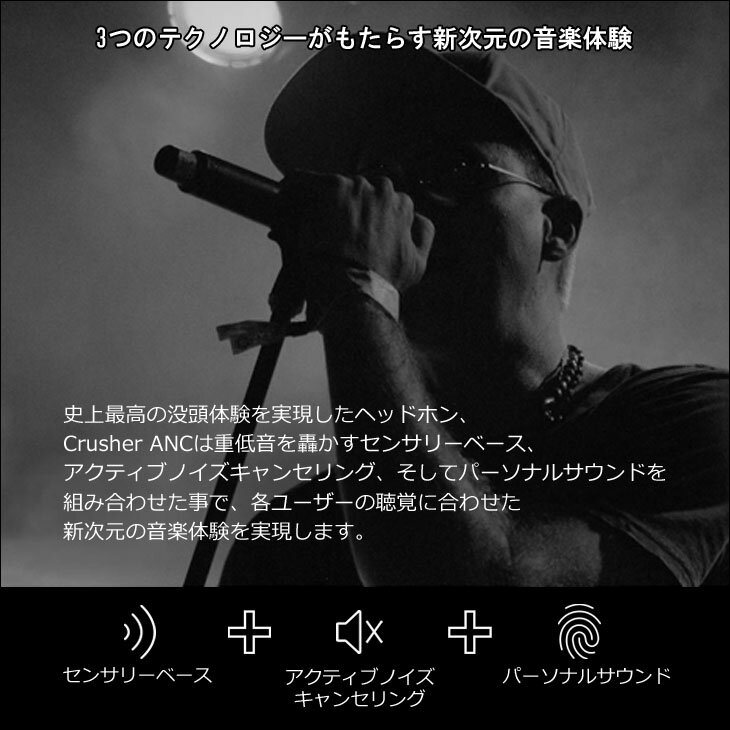 【安心の日本正規品】 ◆メーカー保証期間 : 2年(保証書付き) Crusher ANC サブウーファー搭載ノイズキャンセリングヘッドホン ・調節可能なセンサリーベース ・デジタルアクティブノイズキャンセリング ・パーソナルサウンド ・Bluetoothワイヤレス技術 ・最長24時間駆動の急速充電対応バッテリ ・Tile内蔵 ■ 商品詳細 ■ 【品番】Z-OS6CPW ■カラー: BLACK/TAN(ブラックタン) BLACK(ブラック) MOABRED(モアブレッド) ●技術詳細 ヘッドホンタイプ:Bluetoothオーバーイヤー式 接続:Bluetooth5.0 インピーダンス:32 Ohms ±15% ドライバー径:40mm THD: <1%@1K 音圧レベル:105 dB @ 1 KHz 再生周波数帯域:20Hz - 20KHz 重量:308g ●同梱品 Crusher ANC ワイヤレスヘッドホン USB-C充電ケーブル AUXケーブル キャリングケース ユーザーガイド 2年保証ガイド ※クレジットカード/銀行振り込み/楽天(etc)決済など、15時までに決済完了の場合は即日発送!(※15時以降の決済確認は翌日以降ご入金確認後の発送) ○デザイン等、予告なしに変更となる場合があります。