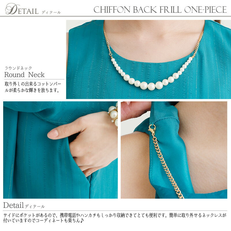 約(cm)肩幅バストウエストヒップ着丈袖丈M 32cm 88cm 80cm 100cm 91cm -素材 ポリエステル100%裏地なし伸縮性 なしファスナーあり(背面) 付属品ネックレス透け感なしカラーピーコックブルー/ブラック/ミントグリーン/ネイビー実寸サイズ商品を平置きにし、メジャーにて手作業による採寸をしております。