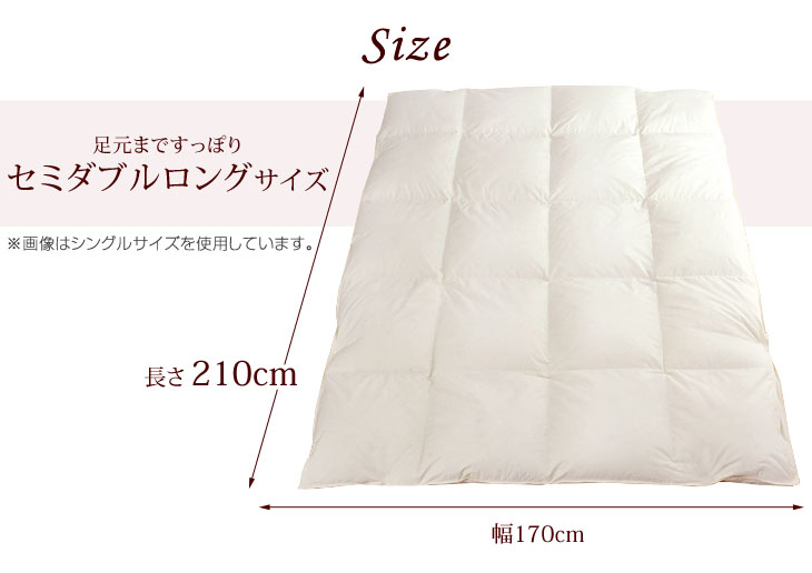 ★送料無料★ 羽毛布団 セミダブル ロング 女神プレミアム 増量1.5kg ホワイトマザーグース ダウン95% 日本製 二層キルト ツインキルト 7年保証 CILブラックラベル 440dp以上 かさ高180mm以上 アレルGプラス 抗菌 防臭 掛布団 羽毛掛け
