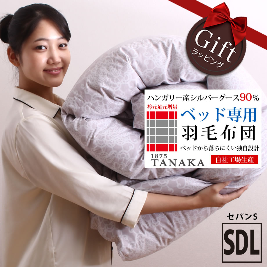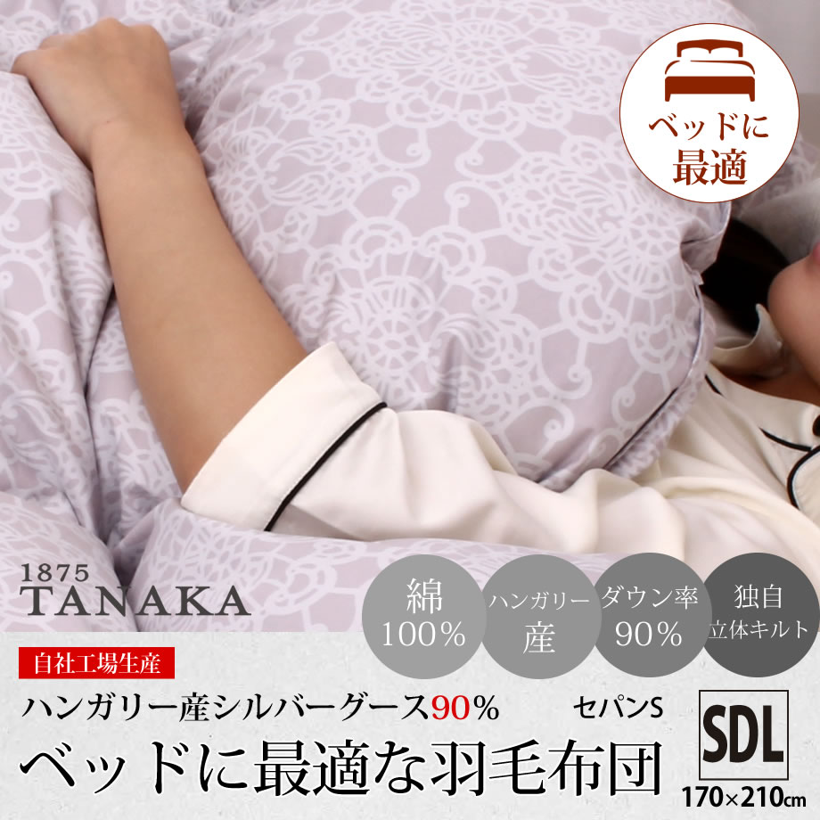 ★ベッドにお薦め!落ちにくい 羽毛布団 セミダブル SDL 170×210cm ベッドに最適 グラデーションキルト 独自キルト 衿元足元増量 ハンガリー産 シルバーグース90% DP410 詰め物1.35kg 綿100% 自社工場製 ギフト【セパンS】