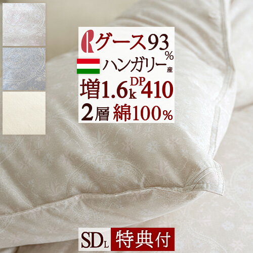 特別1500円引クーポン★【夏の特典付】 羽毛布団 セミダブル グース 増量1.6kg DP410 日本製 ハンガリー産 ポーランド産 グースダウン93% 2層 二層式キルト ロマンス小杉 羽毛掛けふとん93% セミダブルサイズ