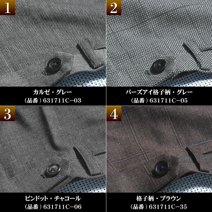 ▼お直しはパンツと共にご注文くださいませ▼| 裾上げ(シングル) | 裾上げ(ダブル) | ウエスト補正 | 【素材】 ◆1〜4… ウール30% ポリエステル70% ◆5〜13…ウール50% ポリエステル50%【仕様】 ノータックパンツ スリム ストレートローライズ ウォッシャブル 撥水 防汚 防しわ ストレッチ プリーツ保持【カラー】1:カルゼ・グレー (品番) 631711C-03 2:バーズアイ格子柄・グレー (品番) 631711C-05 3:ピンドット・チャコール (品番) 631711C-06 4:格子柄・ブラウン (品番) 631711C-35 5:ツイード・チャコールチェック (品番) 431711C-05 6:ヘリンボーン・グレー (品番) 431712C-03 7:ツイード・ネイビーチェック (品番) 431712C-75 8:ツイード・チャコールストライプ (品番) 431713C-04 9:ネップツイード・チャコール (品番) 431713C-05 10:ヘリンボーン・ブラック (品番) 231714C-6 11:ヘリンボーン・グレー (品番) 231712C-03 12:ツイード・チャコールチェック (品番) 231713C-5 13:ツイード・ブラウン (品番) 231713C-35【対応シーズン】秋冬(秋物 冬物 秋冬物)【取扱サイズ】73cm 76cm 79cm 82cm 85cm 88cm 91cm 94cm【ブランド】MONTEVISO 【洗濯表記】 【キーワード】 ジャケパンスタイル オフィスカジュアル オフィススタイル ビジネススタイル WARM BIZ ウォームビズ ビジカジ メンズ 男性用 紳士用 Le orme ルオルメ SHIRT STYLE シャツスタイル ツイード メンズ ビジカジ ジャケパン 黒 茶色 灰色 濃灰色 ヘリンボーン レトロ クラシック クラシカル 細い 細身 スリムフィット 極細 スラックス トラウザーズ ツイード 細見え ミルド カルゼ バーズアイ ブラウン チャコール グレー※色や質感をなるべく実際の商品に近いかたちでお伝えすべく撮影及び画像処理には気を配っておりますが、ブラウザやモニタなどお使いのパソコン環境により多少異なる場合がございます。